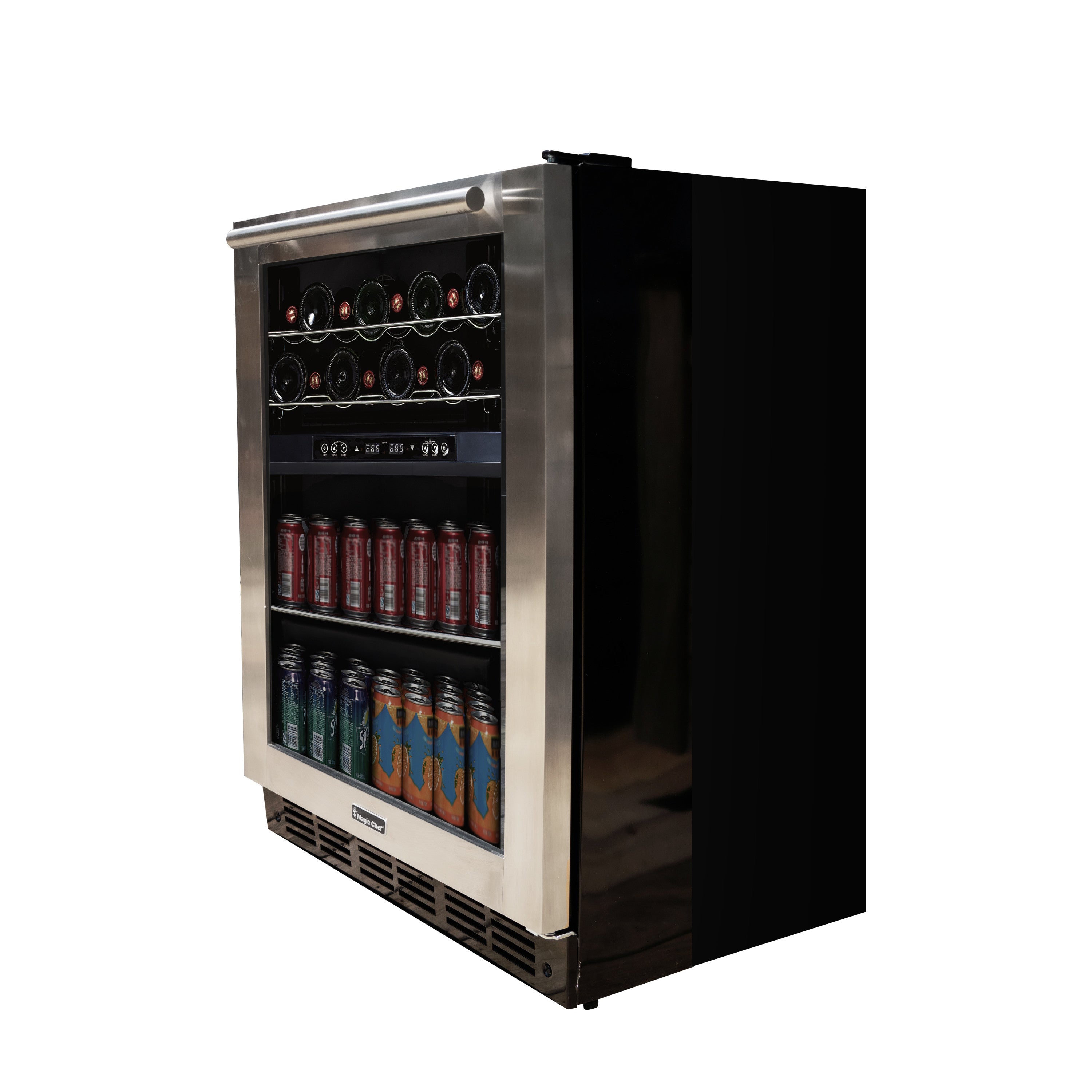 The Magic Chef Dual zone wine cooler lets you easily store your favorite wines at the right temperature. The digitally-controlled thermostat lets you set the desired temperatures for perfectly chilled whites and reds. This front-vented design allows free standing or built in installation. Perfect for those who want to conveniently store wines while freeing up additional space in their refrigerator or cabinet This wine cooler features a stainless steel door, stainless trim, interior LED lighting and easy to use digital controls.