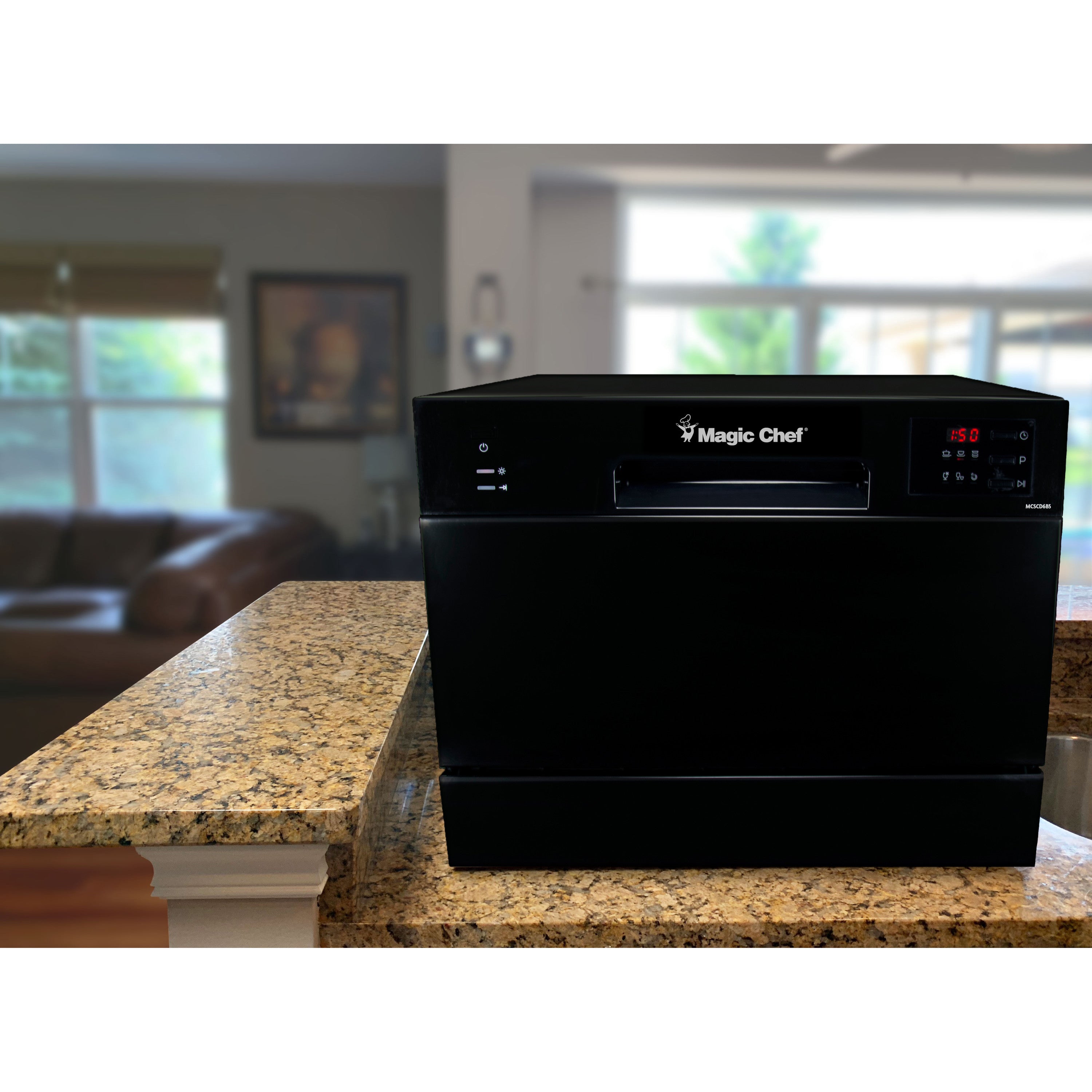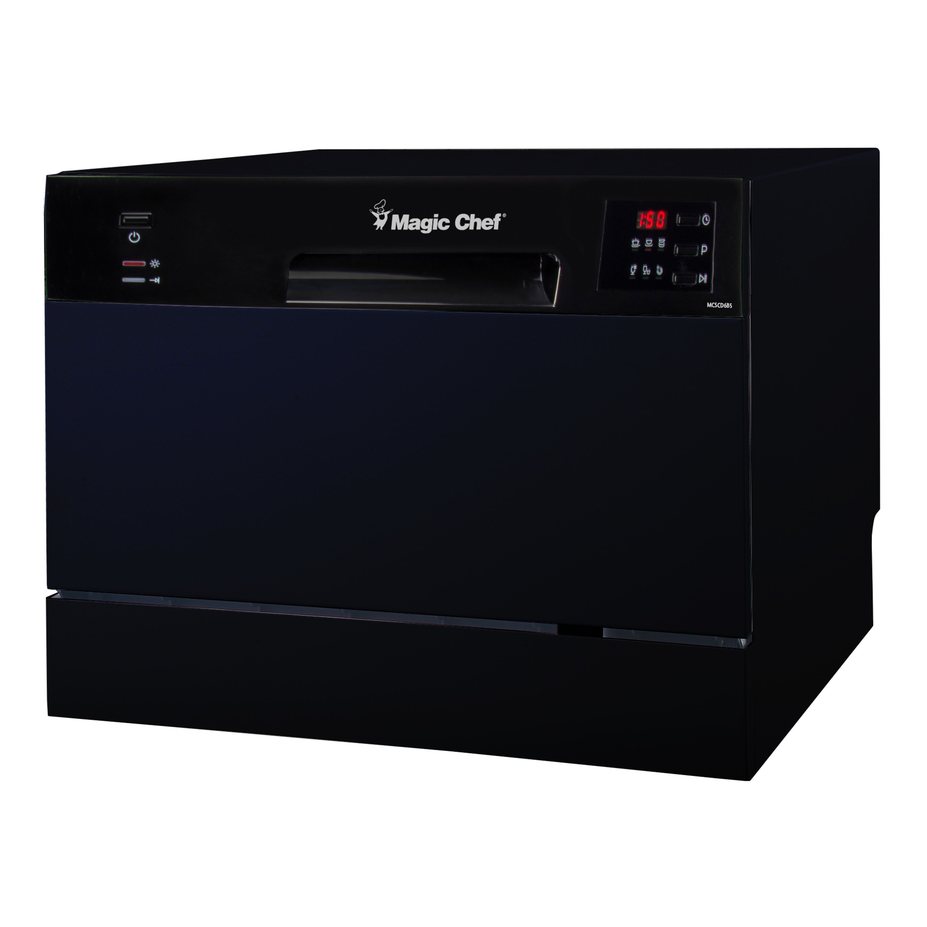 The Magic Chef Energy Star countertop dishwasher provides all the convenience of a full-size dishwasher right on your countertop. It features enough space to accommodate 6 standard place settings, making it perfect for singles, couples, apartments or the office kitchen. With easy-to-use, push-button electronic controls, it is designed with a stainless steel interior that includes a durable rack, silverware basket and cup shelf for easy loading.