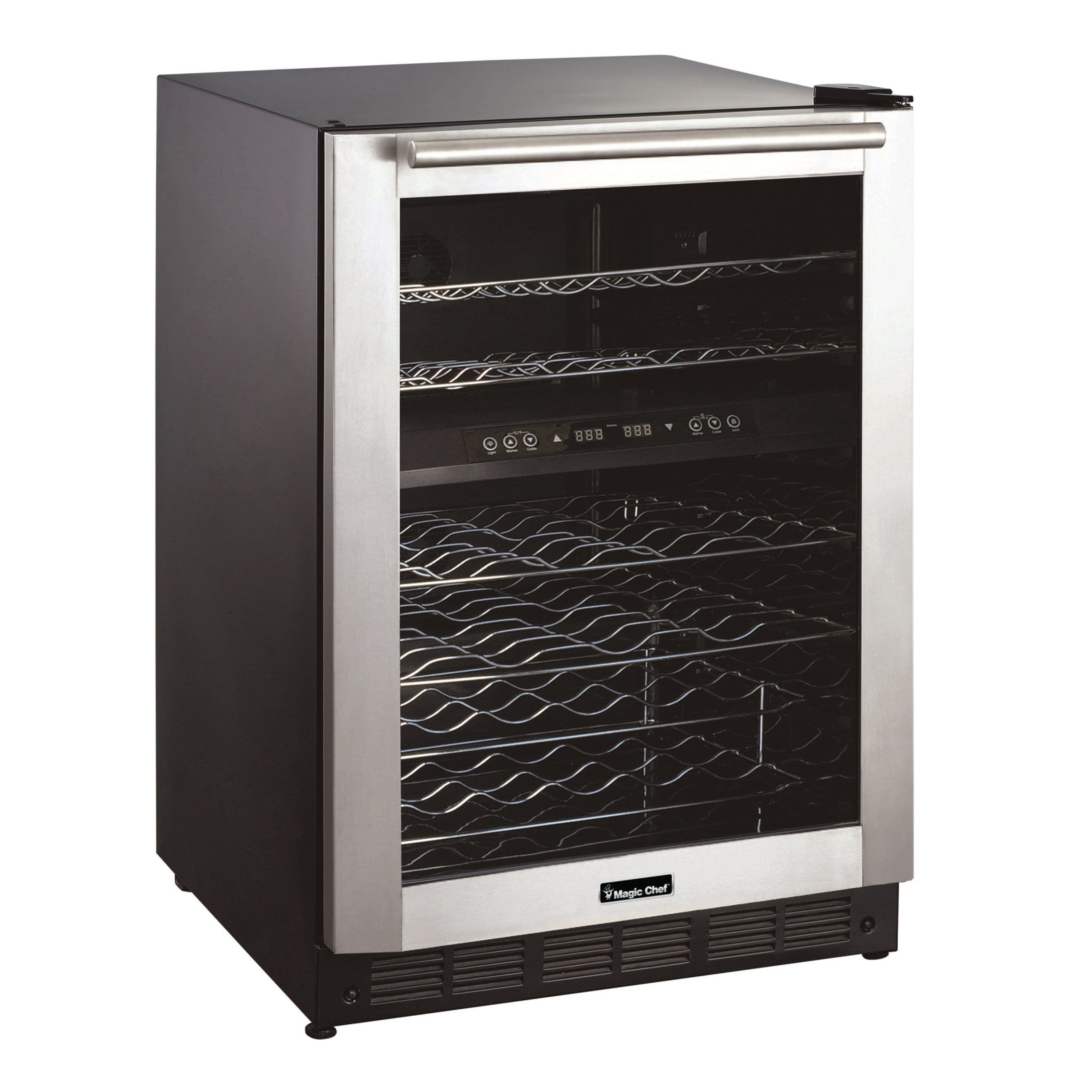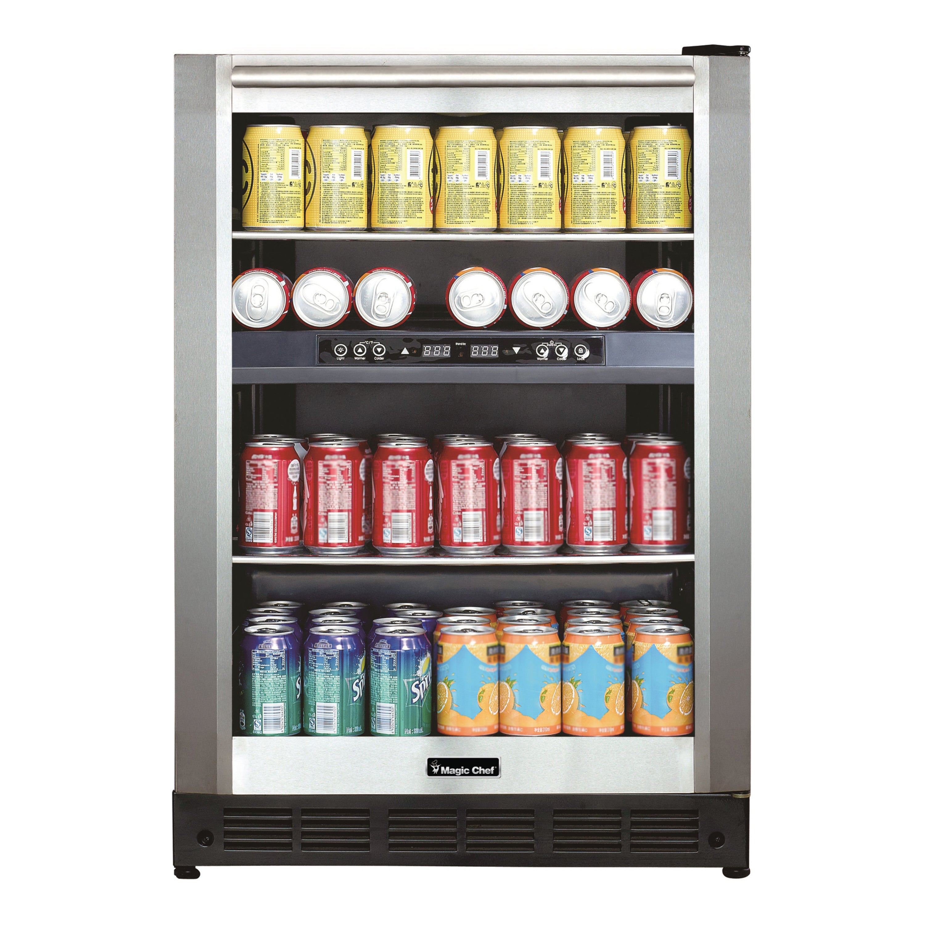 Store your favorite beverages in this Magic Chef Wine and Beverage Cooler. Sealed dual-zone cooling maintains the tem...