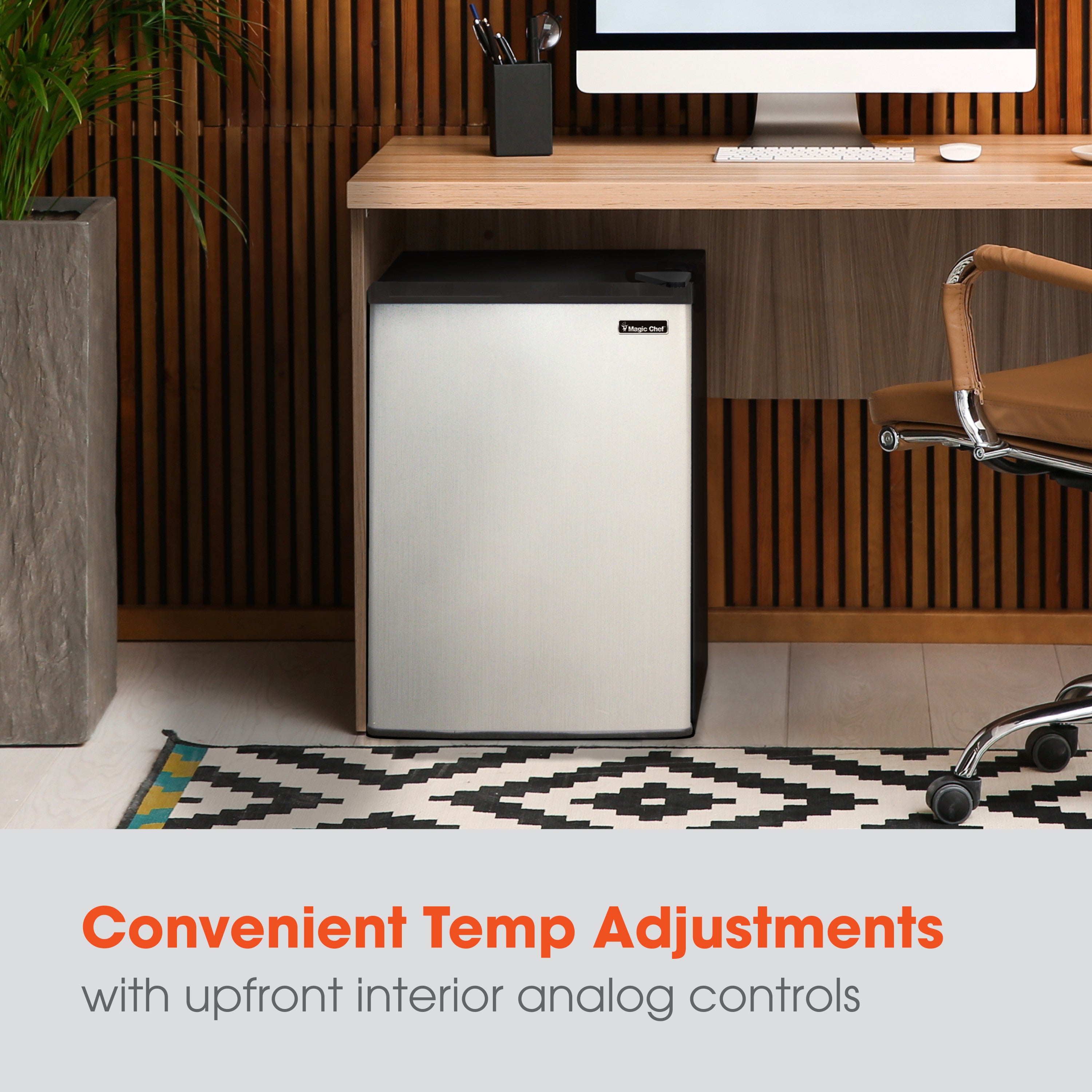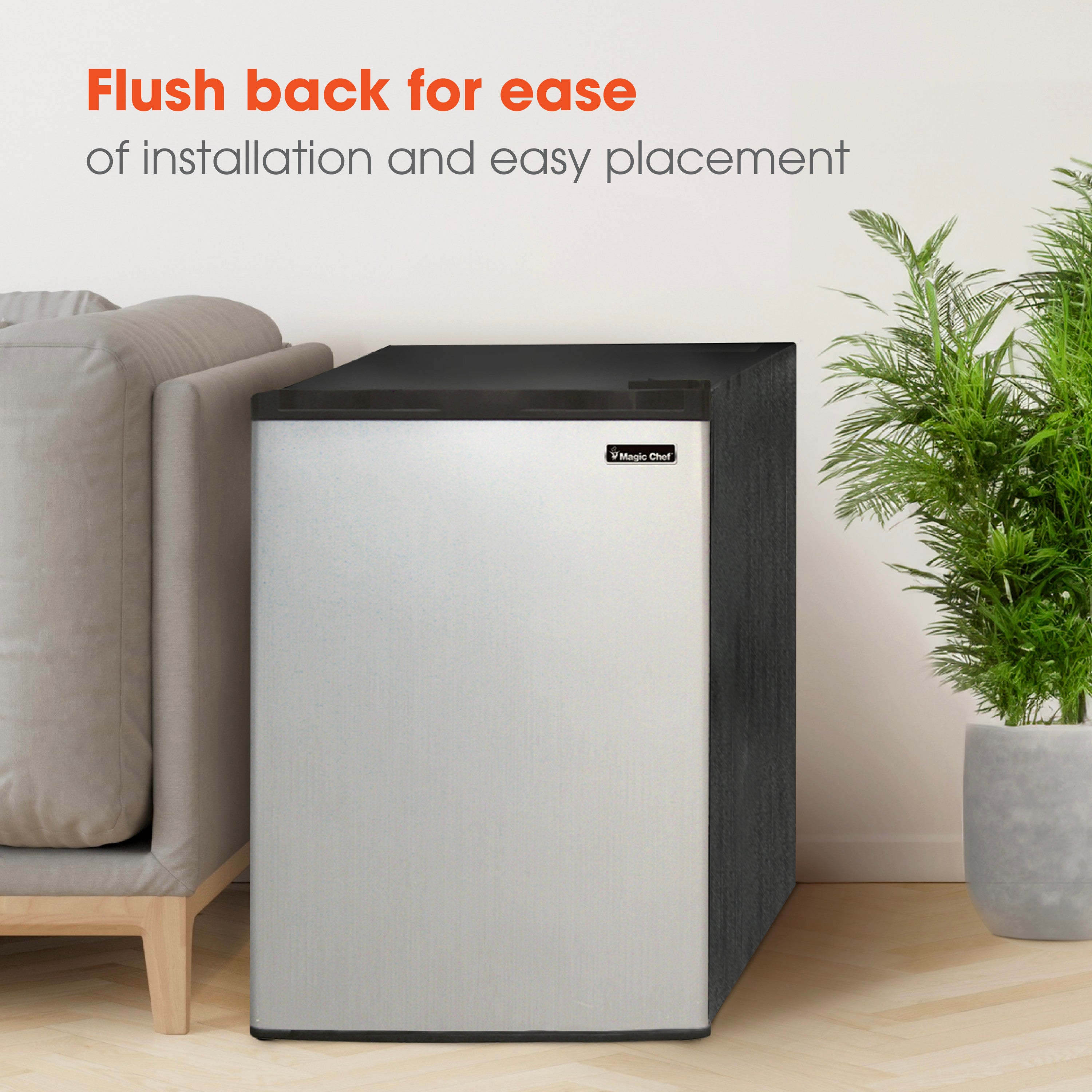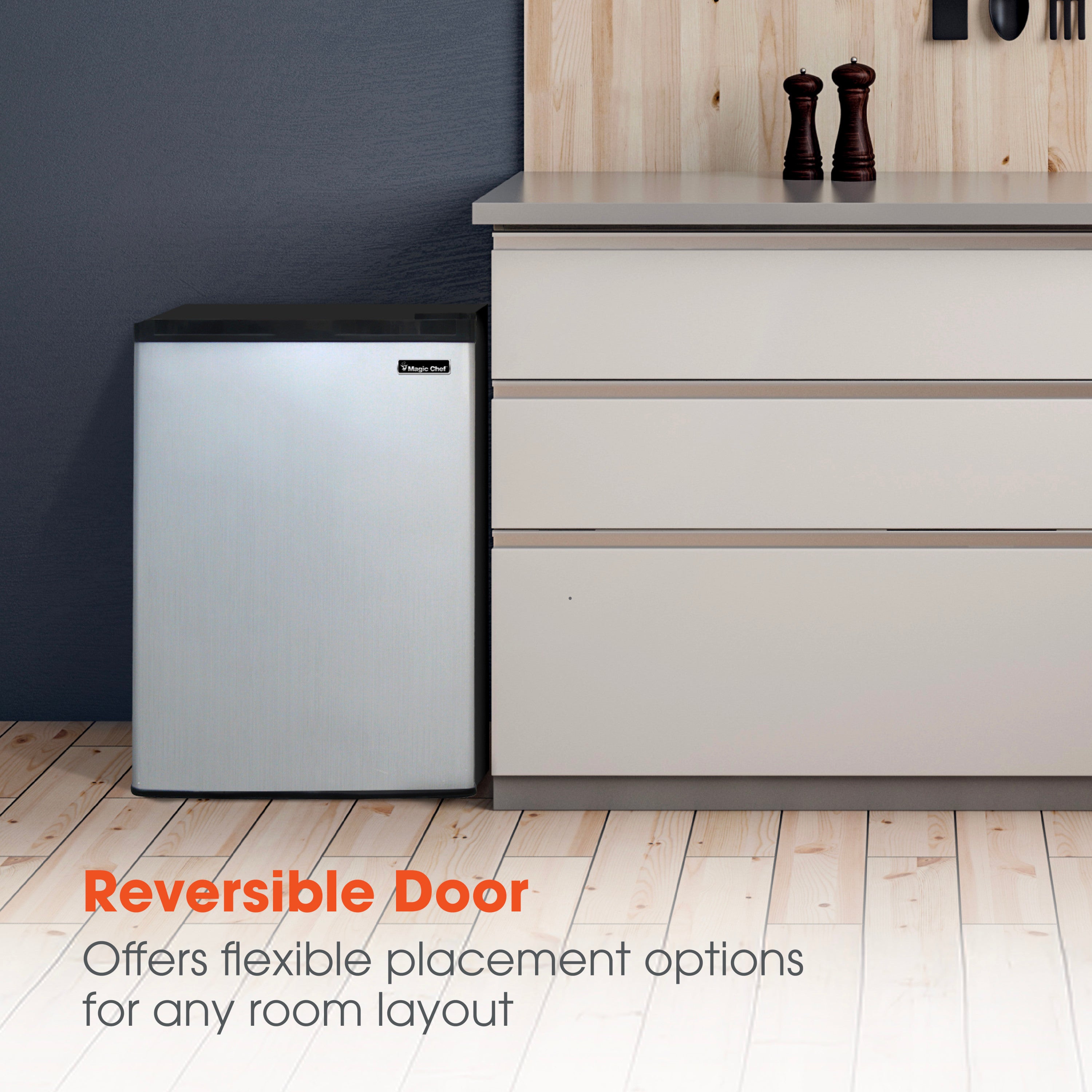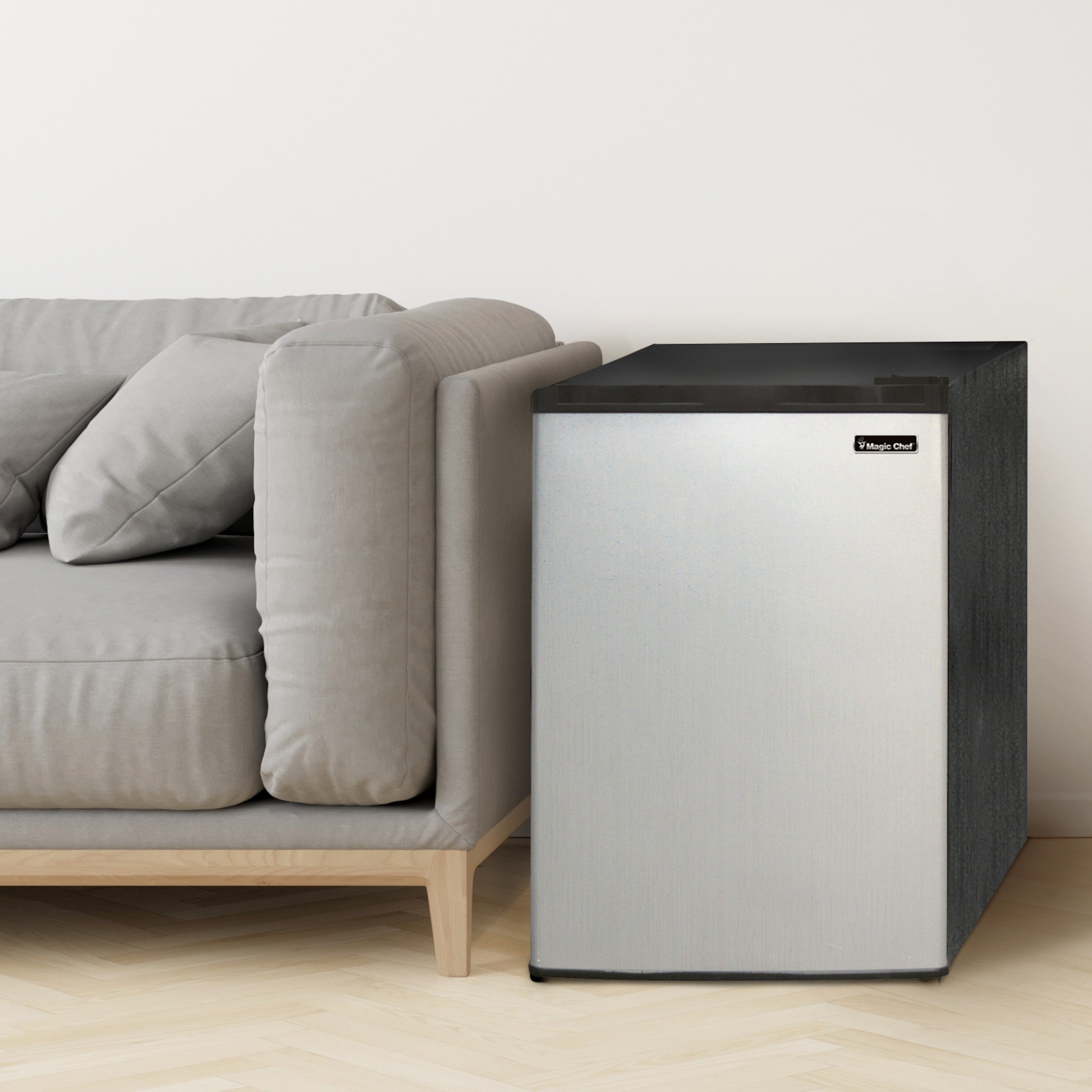 Whether you're college-bound or simply want a little extra refrigerator space in your home, this Magic Chef 2.6 cu. ft. Mini Refrigerator has the storage options you're looking for. A can dispenser conveniently keeps soda in the door while additional door shelves provide space for frequently used items. Glass refrigerator shelves are easy to clean.