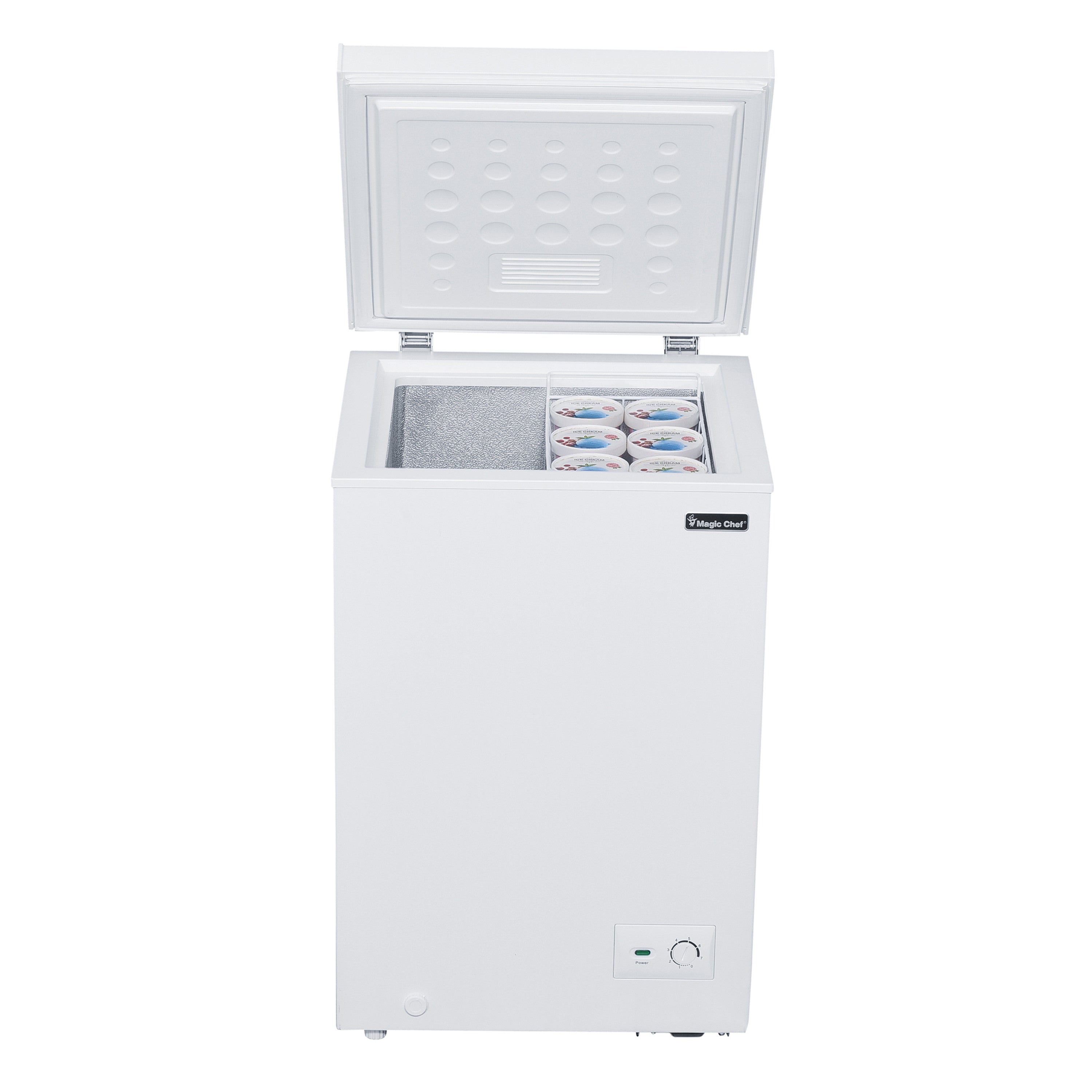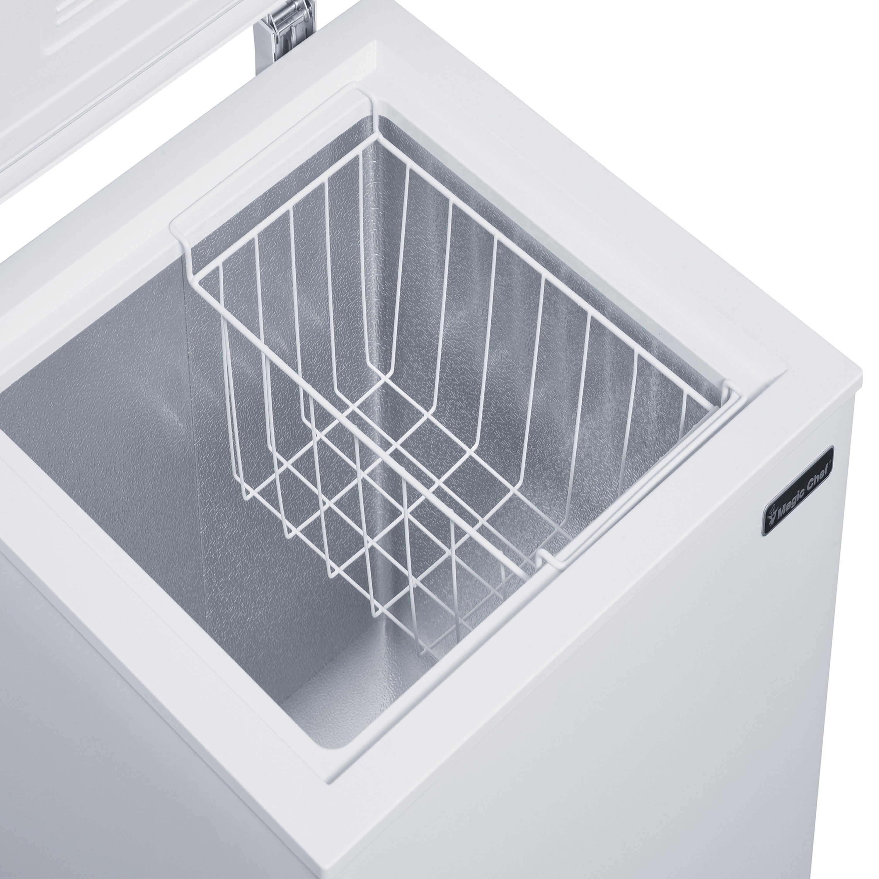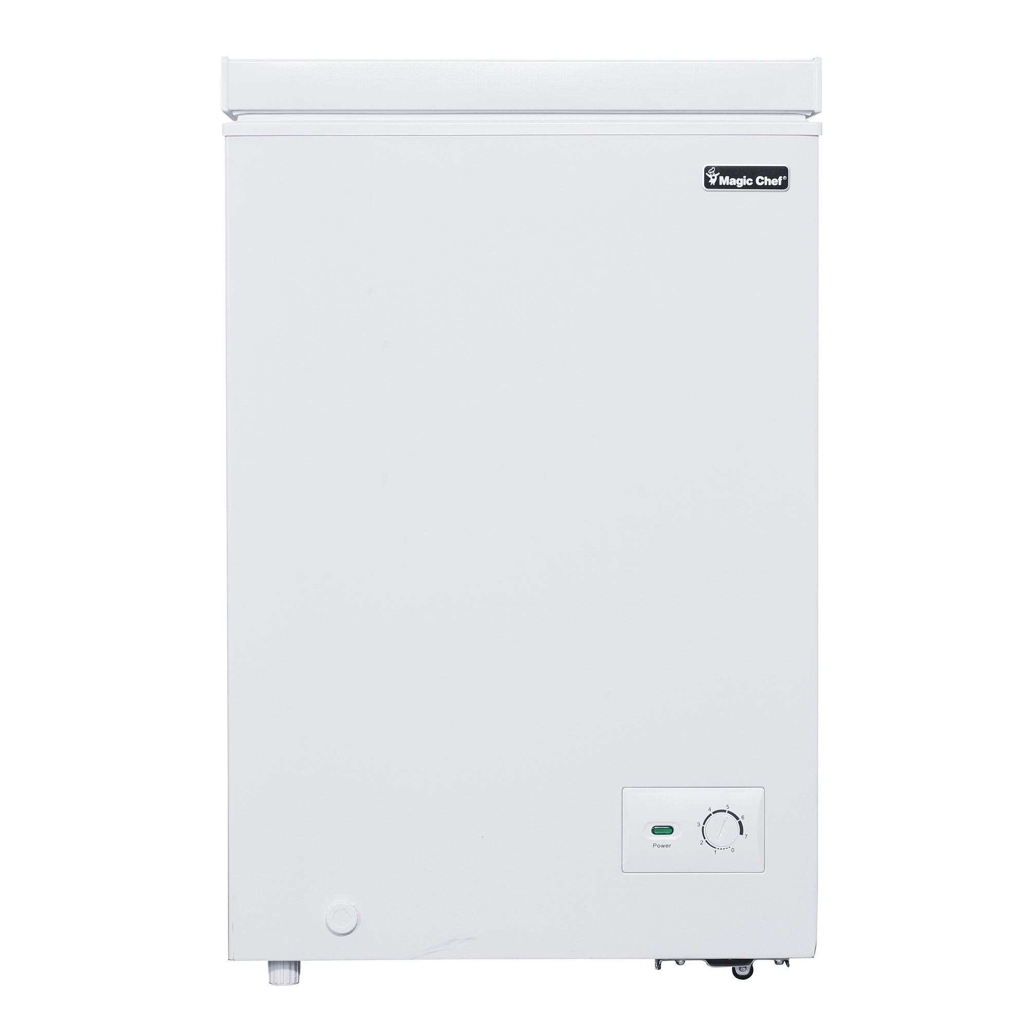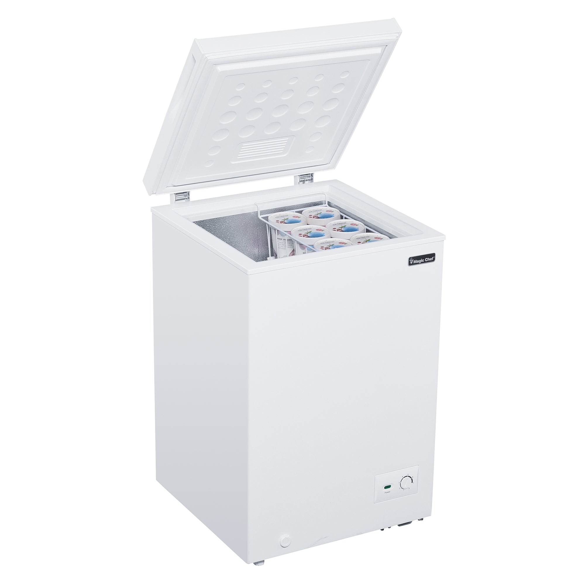 The Magic Chef 3.5 cu. ft. chest freezer will let you stock up on all your extra favorite frozen foods. It offers installation flexibility and provides extra storage for food in a compact space. Freezer should ideally be placed in areas where the ambient temperature ranges from 32°F to 100°F. for efficient operation. The external temperature control makes it easy and efficient to operate because you can make temperature adjustments without opening the lid. The sliding basket makes it easier to organize and access your frozen items. Recessed handle adds to its premium and sleek design.
