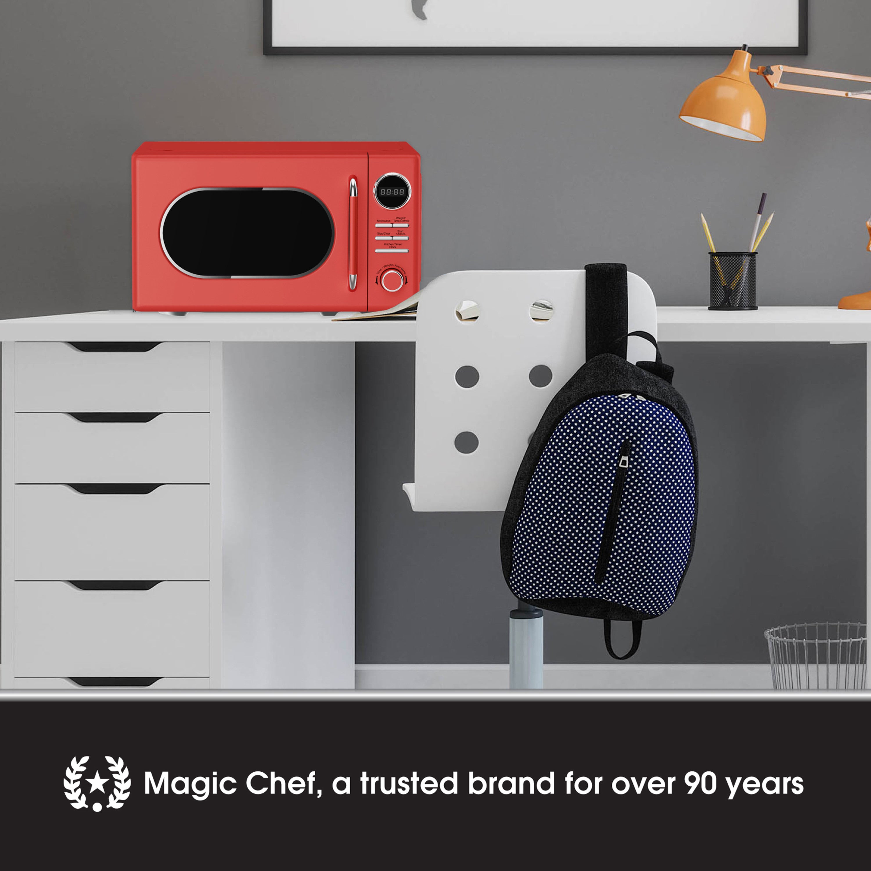 This Magic Chef 0.7 cu. ft. Microwave has a classic retro design and will be the perfect addition to any kitchen, dor...