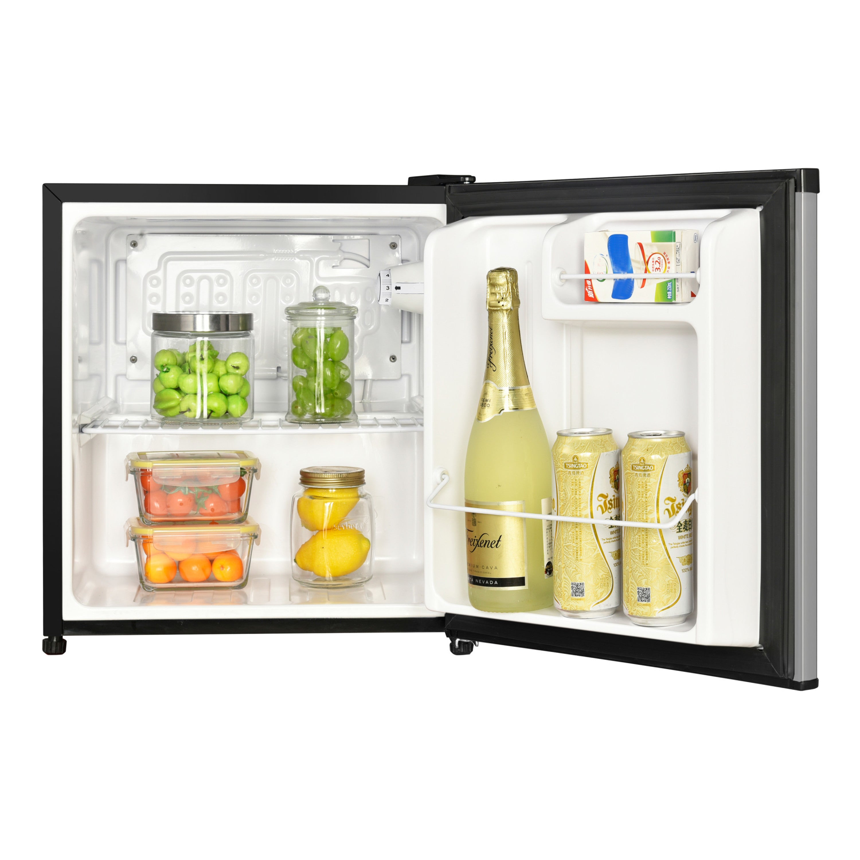 • A durable wire fresh-food shelf in the freezer-less refrigerator design helps keep foods and drinks organized