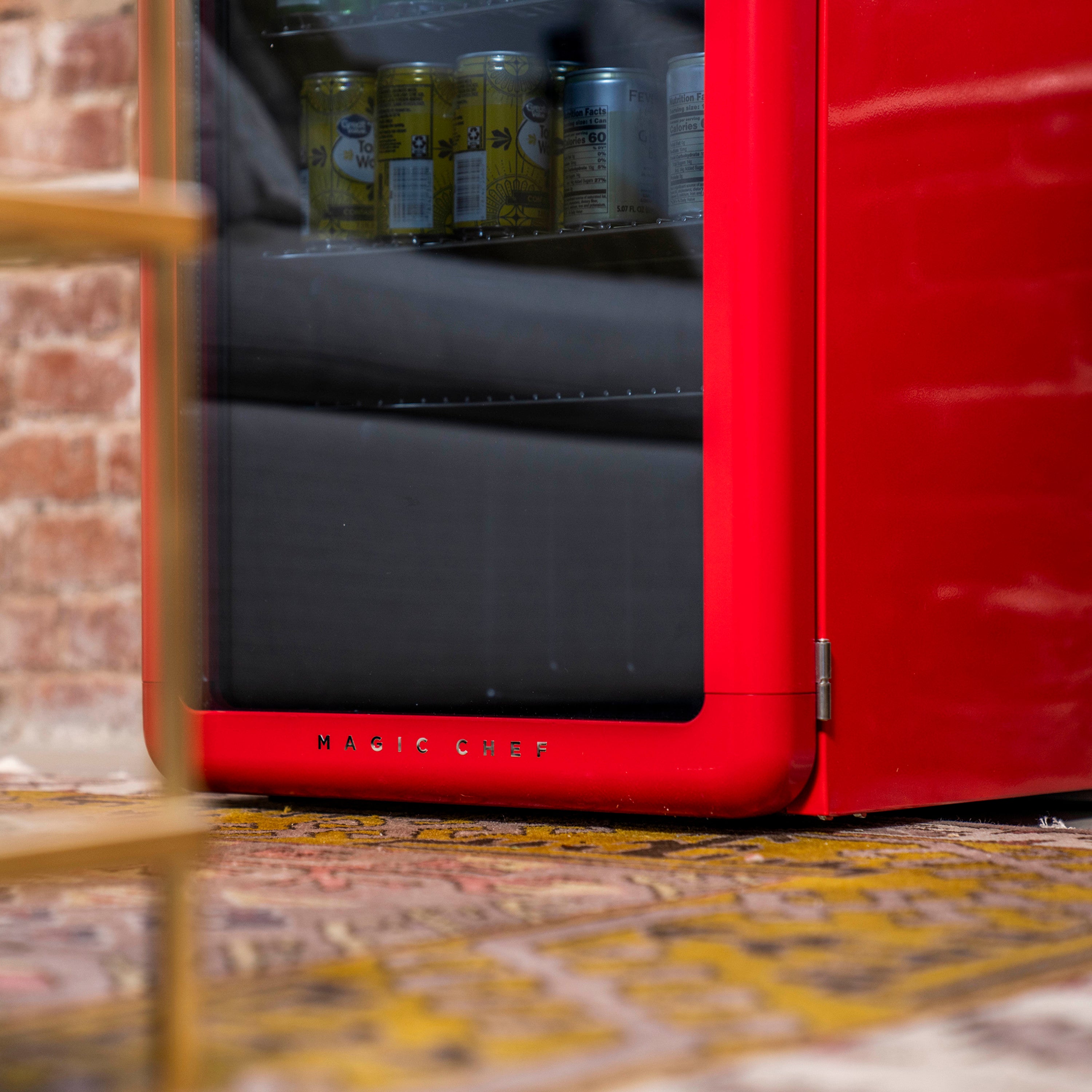 The Magic Chef 3.4 cu. ft. Retro Beverage Cooler in red will be the perfect addition to any dorm, office or rec room....
