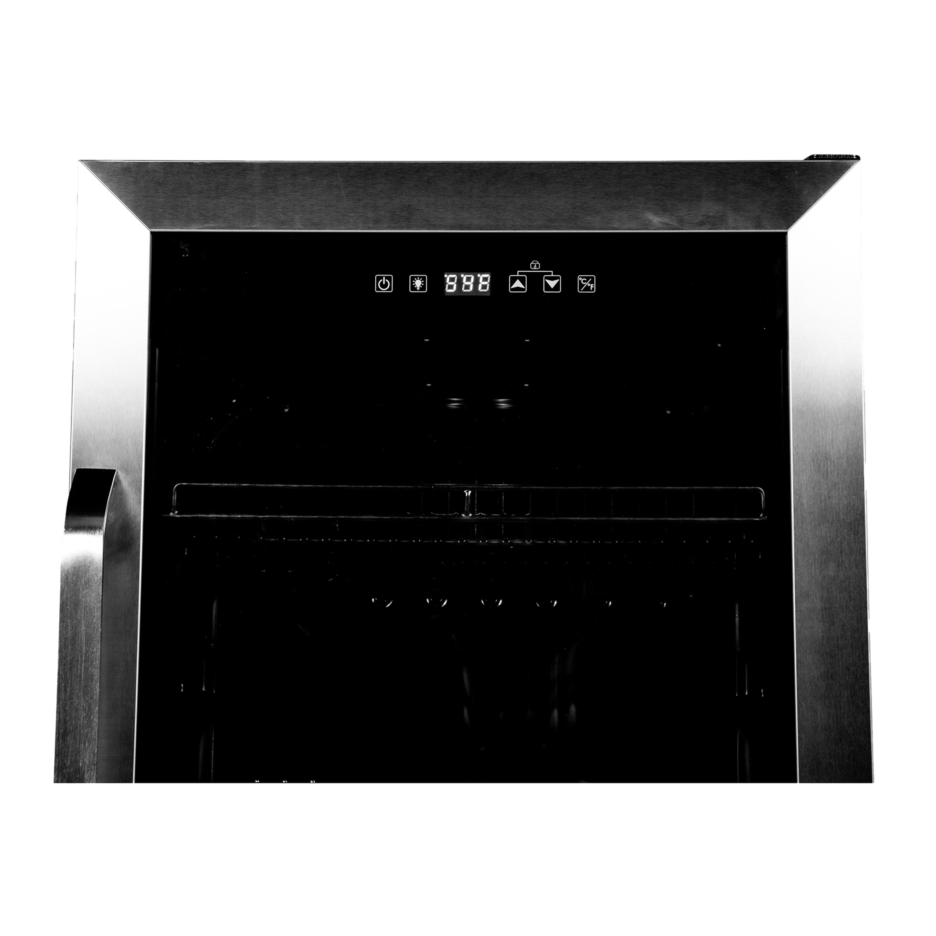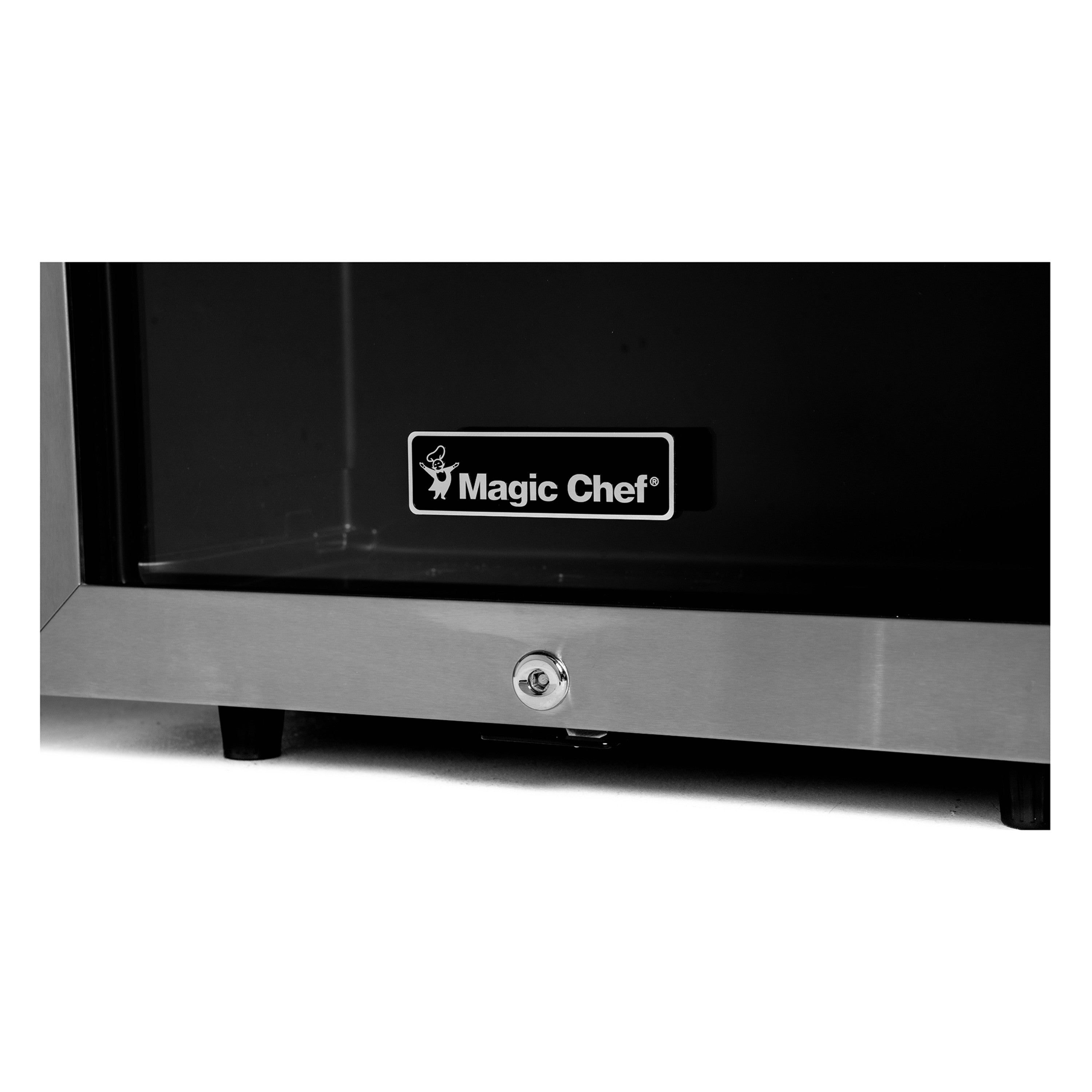 The Magic Chef 3.1 cu. ft. merchandiser is perfect for any hotel, restaurant, convenience store, or café. The internal LED lighting with an On/Off switch brilliantly displays food and beverages to visually connect your customer to your products. 3 shelves allow for convenient restocking and fast service. An adjustable temperature control gives you customized cooling options. The sleek design offers a stainless steel door and digital temperature display.