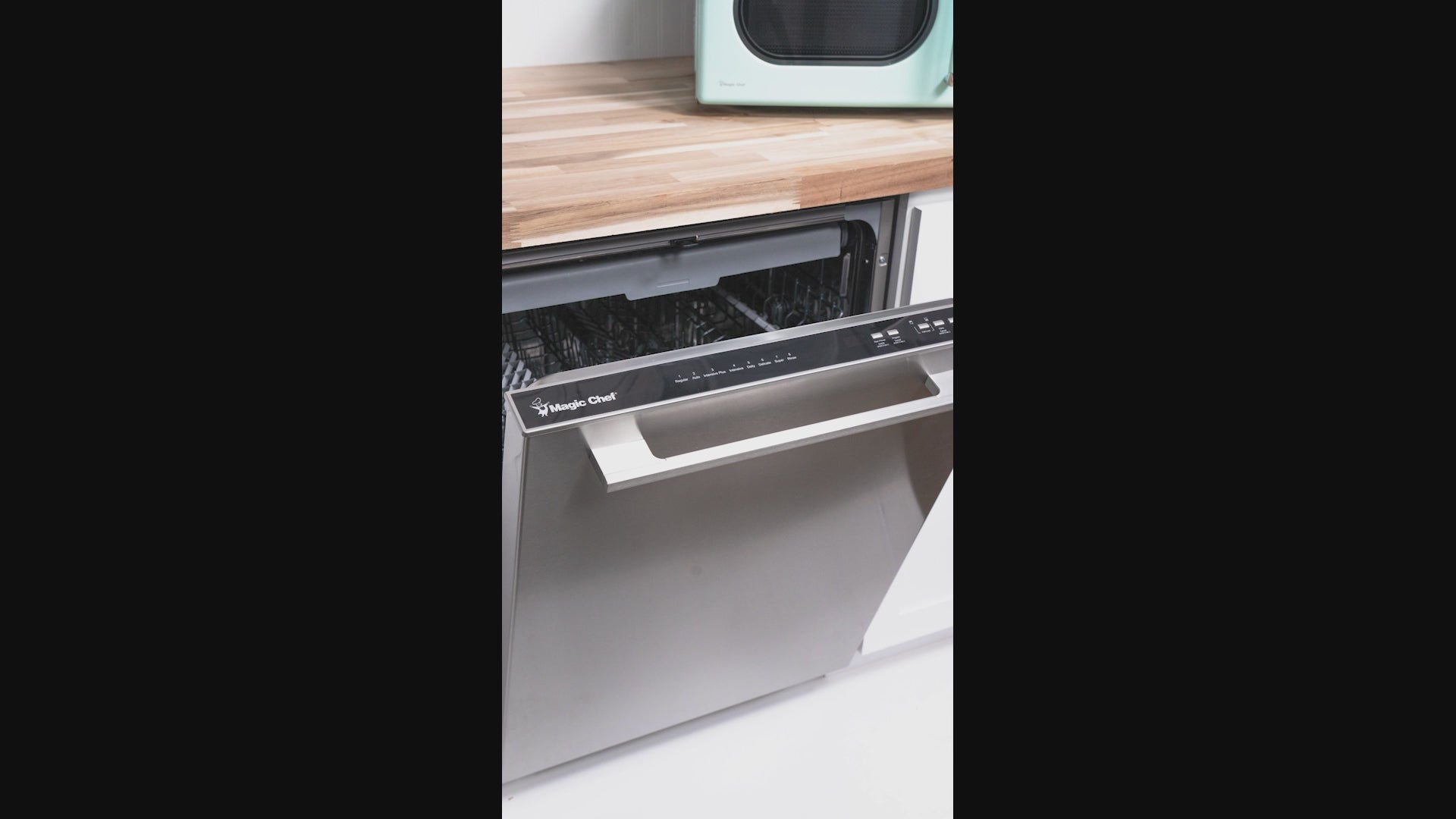 The Magic Chef tall tub dishwasher is highly styled and perfect for any kitchen. This dishwasher operates at a whisper quiet 44 dB so you can run it during naptime or when guests are over. There are 6 wash cycles including regular, auto, intensive, delicate, super and rinse. There are also additional functions you can add on to certain wash cycles and include sanitize, extra rinse, extra dry, hi-temp and half load. The delay wash timer can be used to set the dishwasher to turn on at a later time so you can automatically set it to start at night. An adjustable rack lets you choose the height to best suit your dishes whether you have large pots or pans, dinner plates or wine glass. Stainless steel interior is durable and easy to maintain. The third rack is perfect for placing cutlery or utensils for cleaning. The child lock feature locks the control panel so buttons aren’t pushed accidentally.