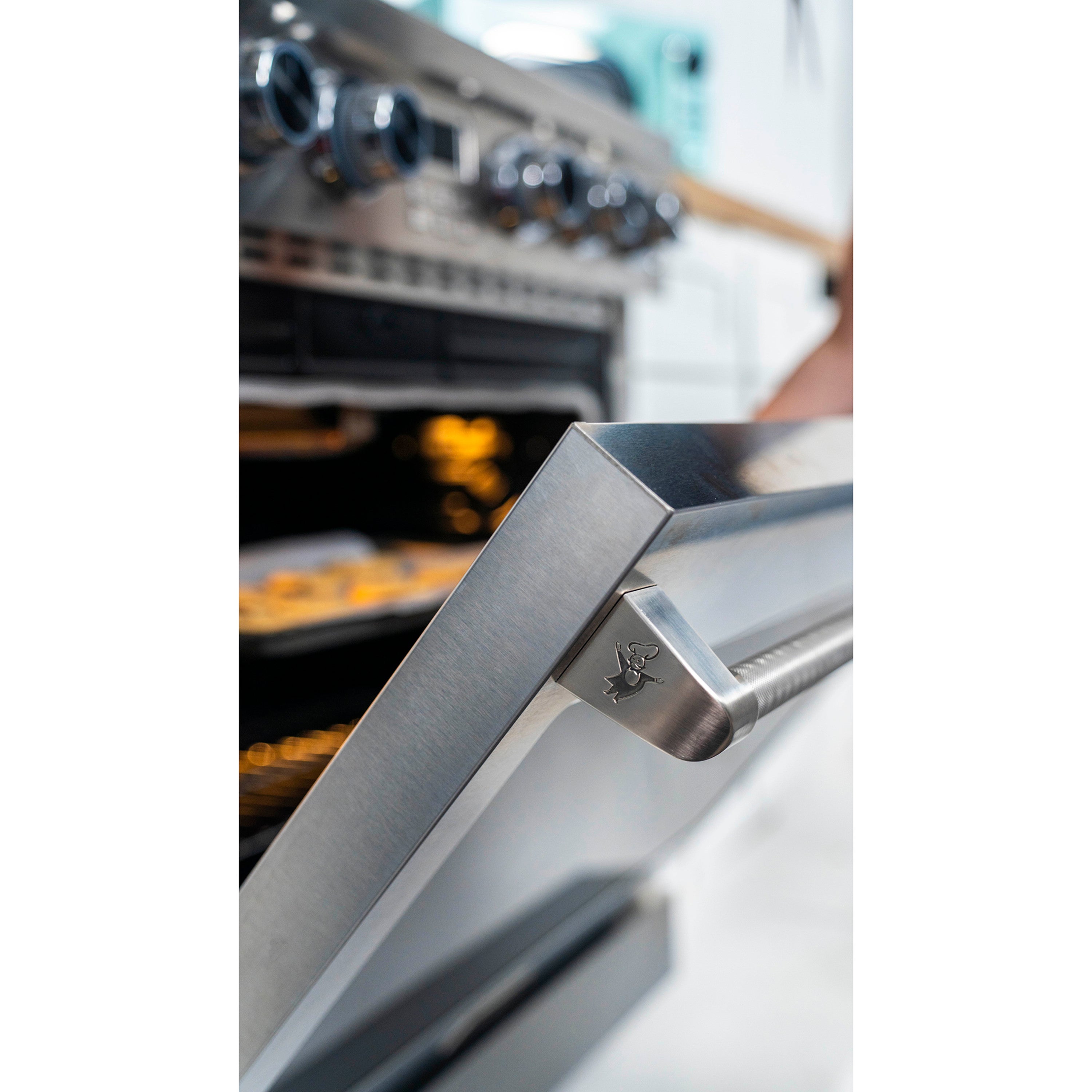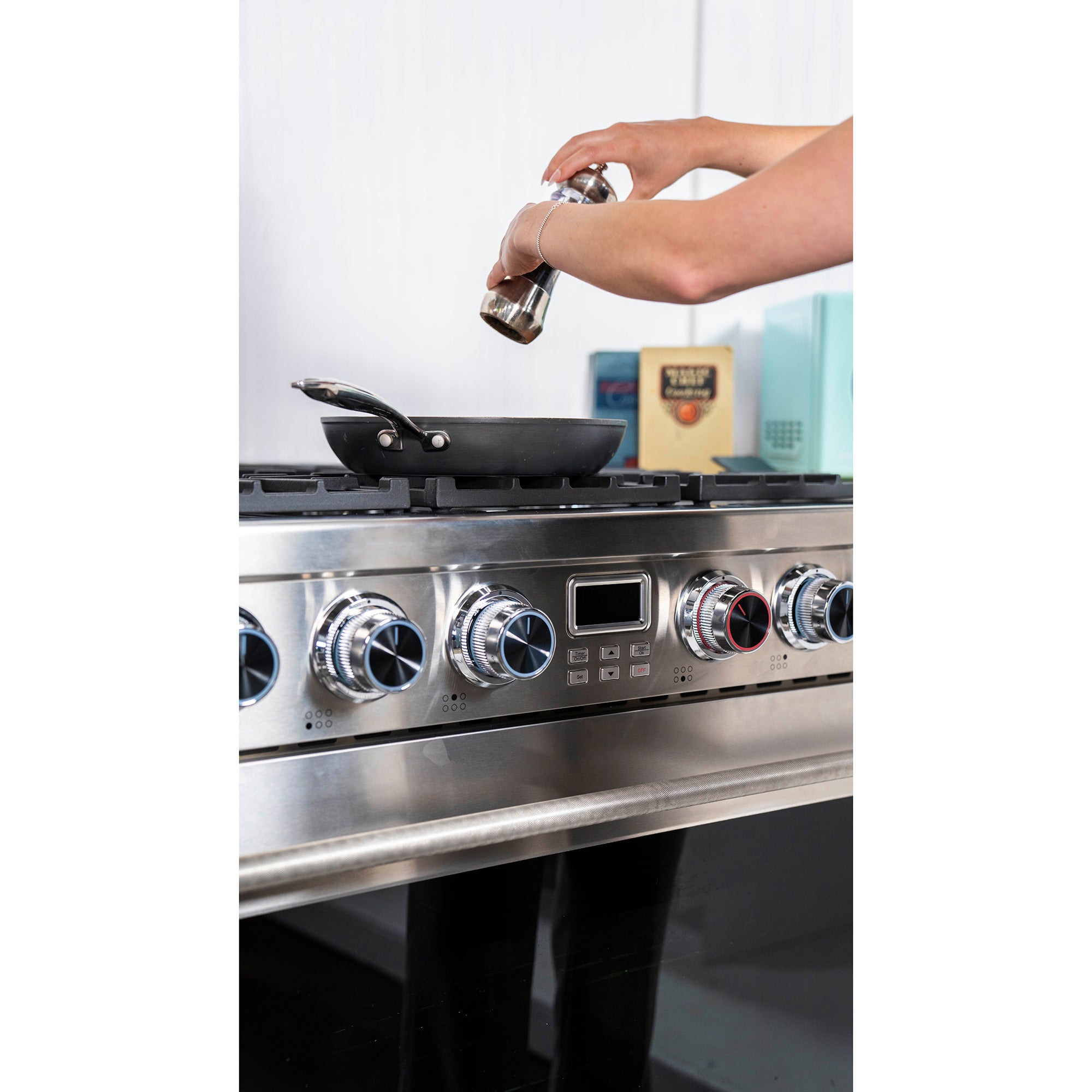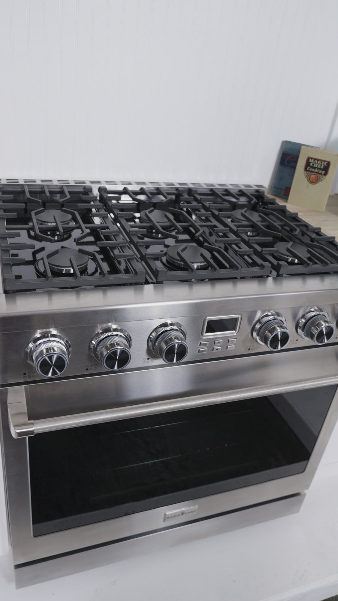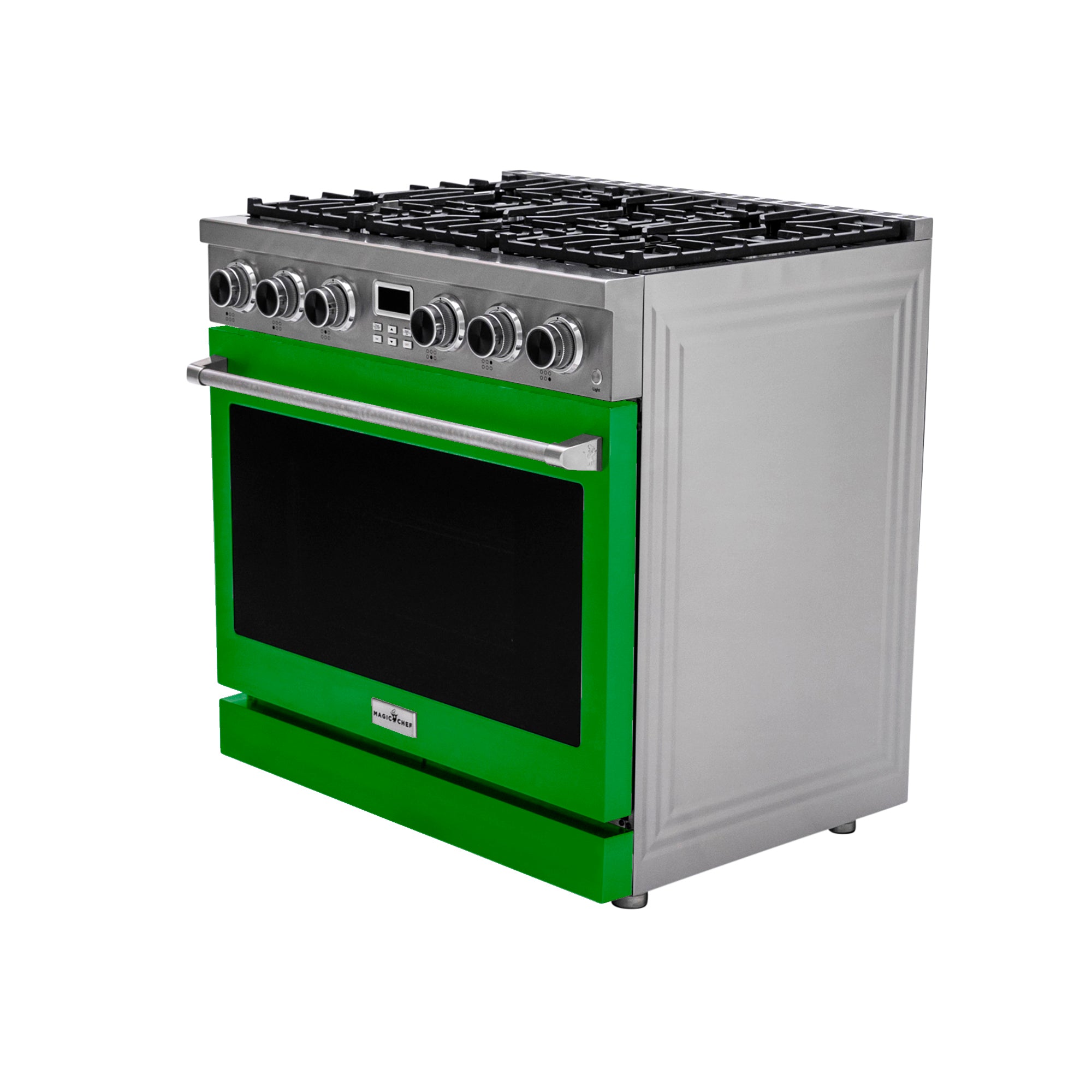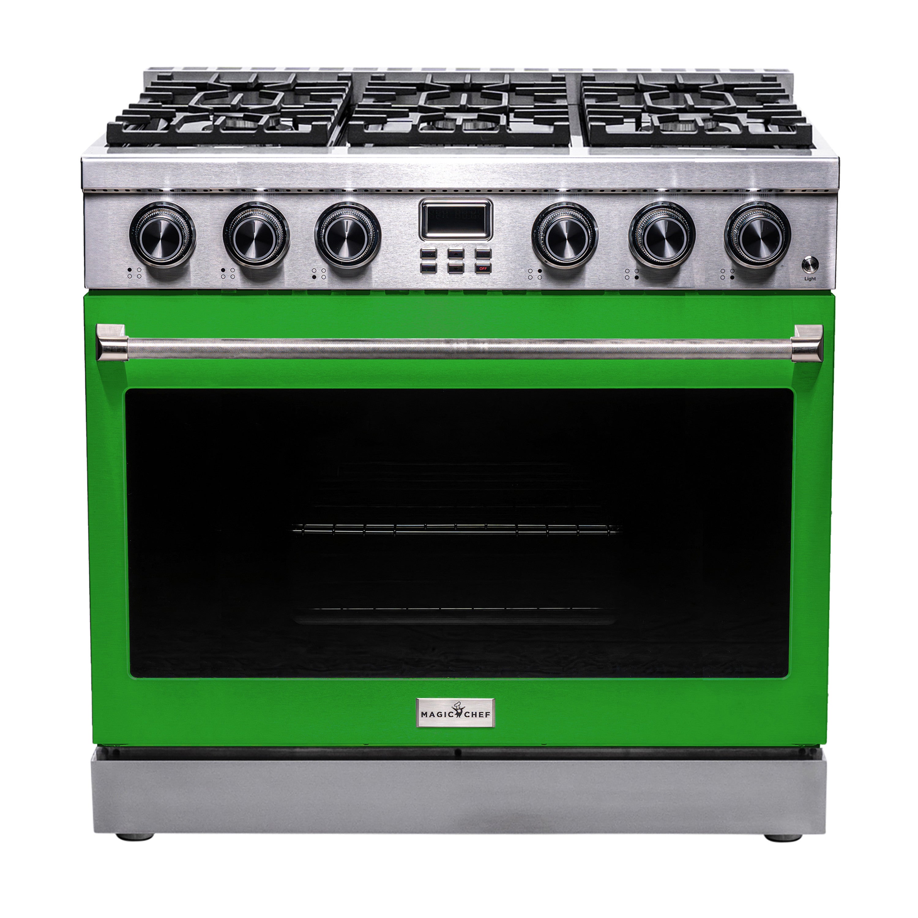 Bring Magic back into your kitchen and experience culinary excellence with the introduction of Magic Chef's 36 in. Pro Style Freestanding Gas Range. It is designed for reliable performance, versatility, and safety. Crafted with durable stainless steel, and a triple-layered glass window, it features continuous cast iron grates and ergonomically designed controls. The control knobs remain lit red, when in use. (no second guessing if burners have been turned off- a safety benefit). For precision cooking it is enhanced by a convection oven and 6 high output sealed burners offering professional-grade BTU cooking performance. 6.0 cu. ft. capacity oven with adjustable racks and a telescoping rack, provides for easy accessibility Plus, with customizable door colors, it is the perfect blend of style and functionality for any kitchen.