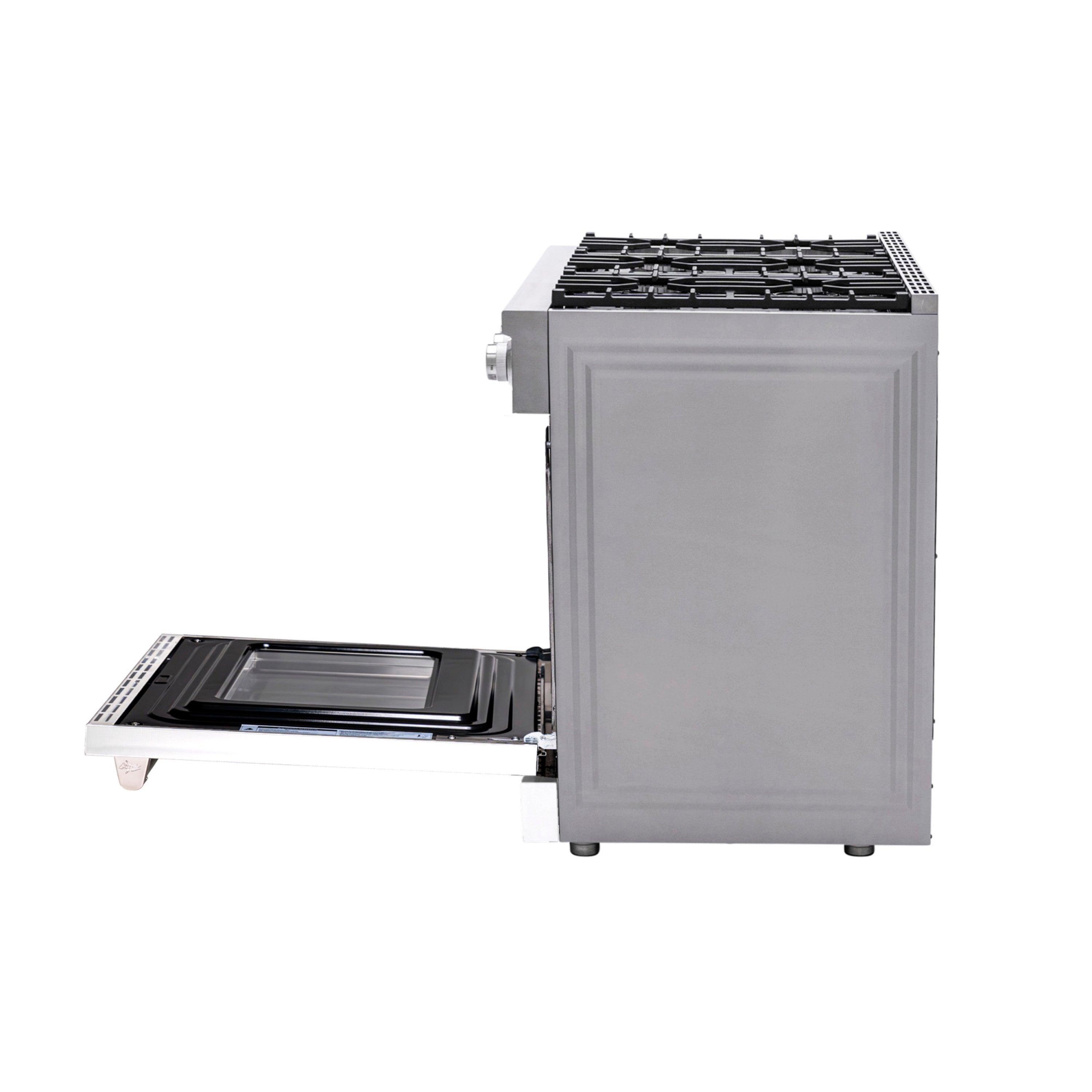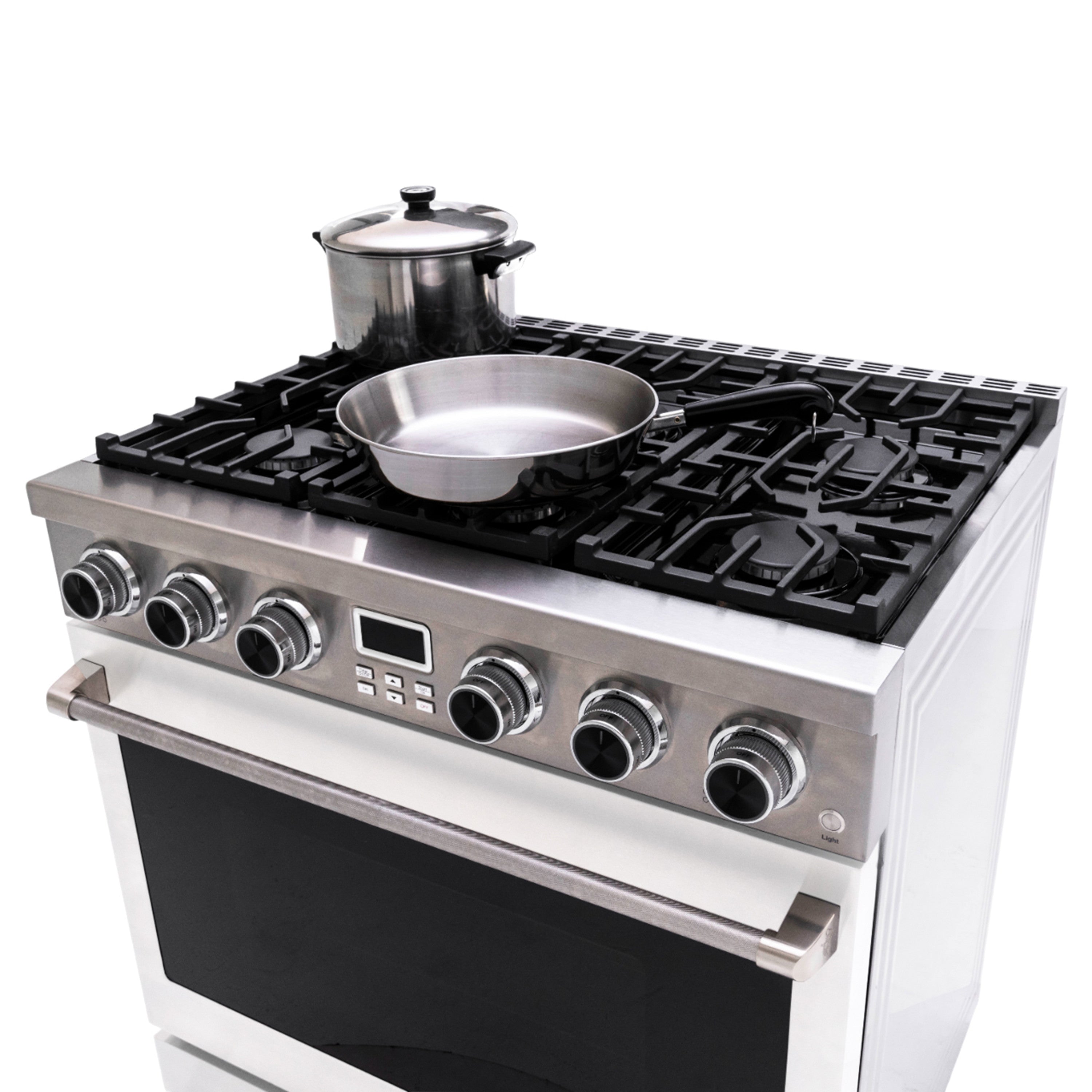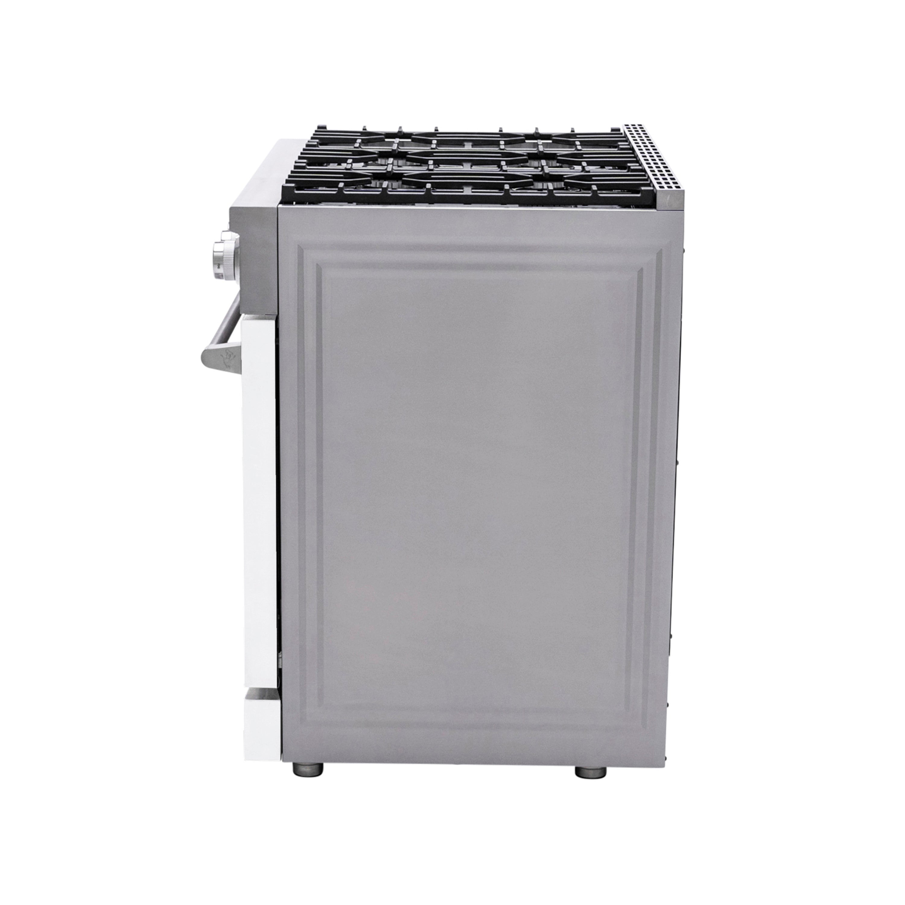 Bring Magic back into your kitchen and experience culinary excellence with the introduction of Magic Chef's 36 in. Pro Style Freestanding Gas Range. It is designed for reliable performance, versatility, and safety. Crafted with durable stainless steel, and a triple-layered glass window, it features continuous cast iron grates and ergonomically designed controls. The control knobs remain lit red, when in use. (no second guessing if burners have been turned off- a safety benefit). For precision cooking it is enhanced by a convection oven and 6 high output sealed burners offering professional-grade BTU cooking performance. 6.0 cu. ft. capacity oven with adjustable racks and a telescoping rack, provides for easy accessibility Plus, with customizable door colors, it is the perfect blend of style and functionality for any kitchen.