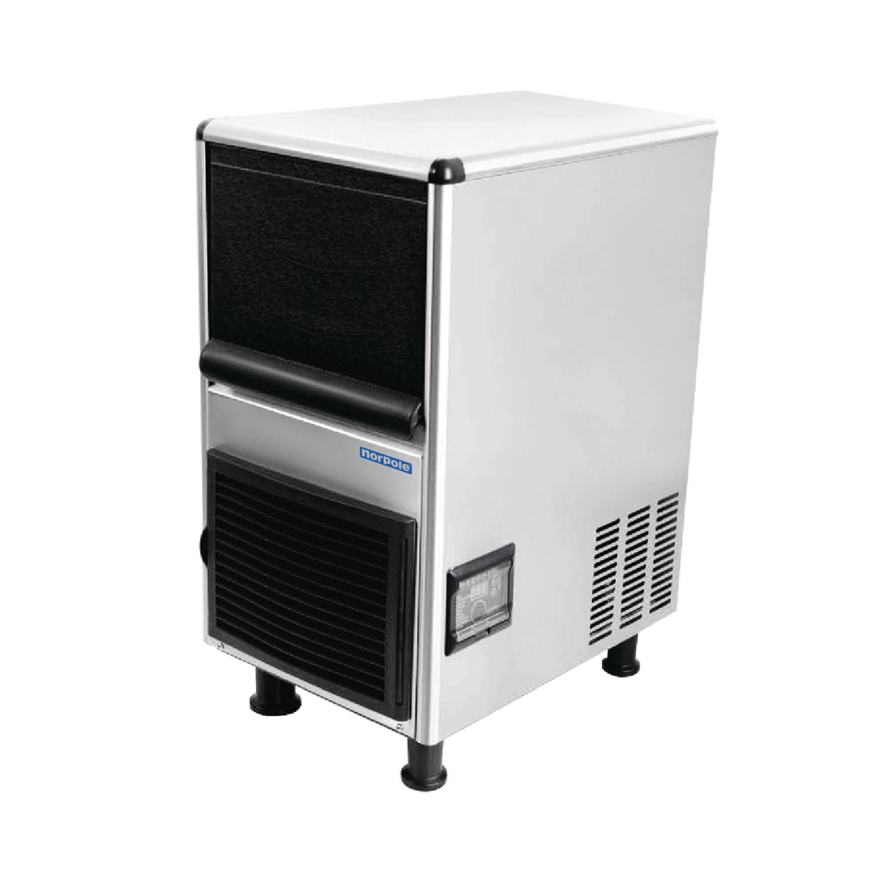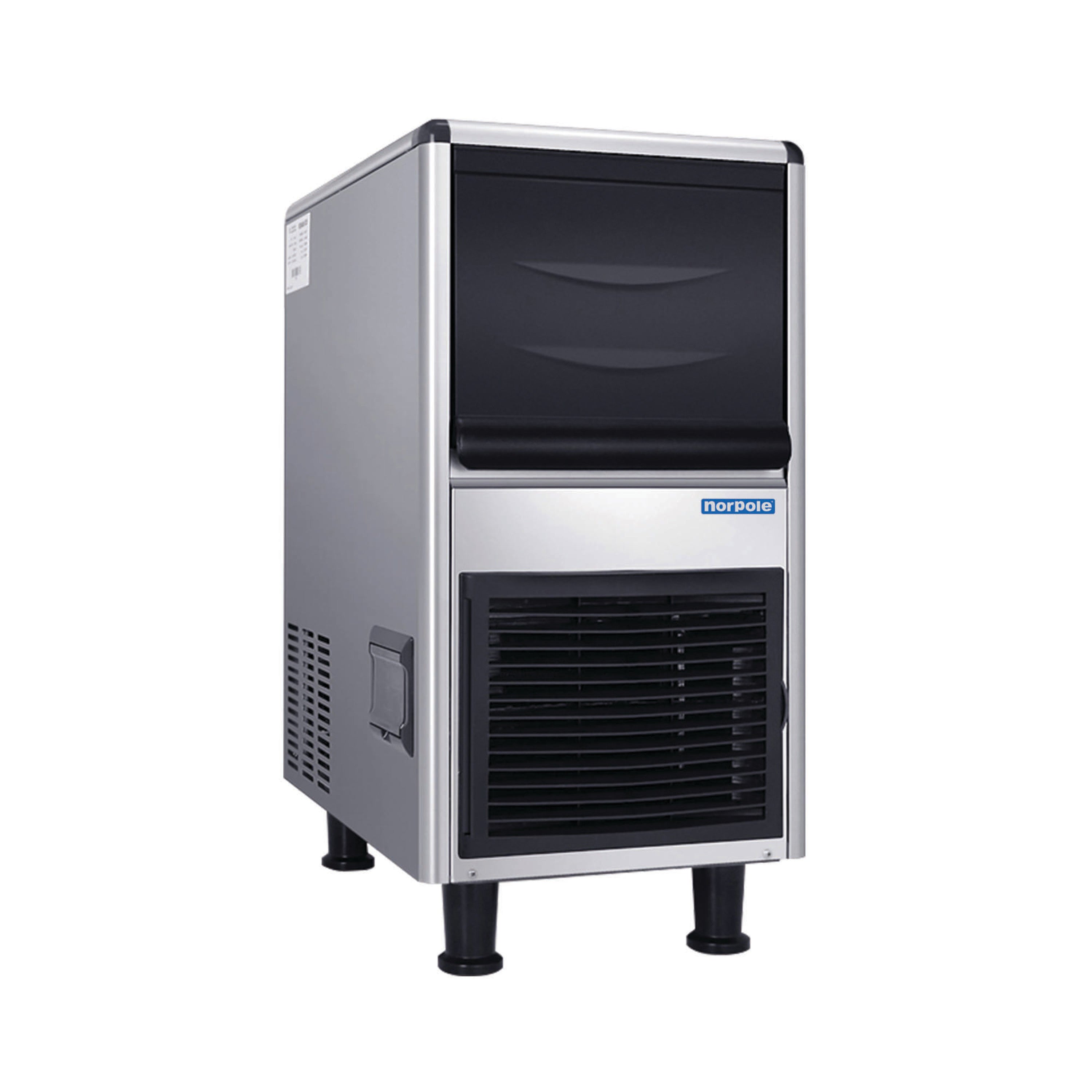 Norpole ice makers are perfect for your commercial kitchen, restaurant, store or hotel. The included in-line water filter produces crystal clear, bullet shaped ice. This ice maker can be freestanding or installed under a counter. Included leveling legs keep things steady and make it easy to clean underneath the ice maker.